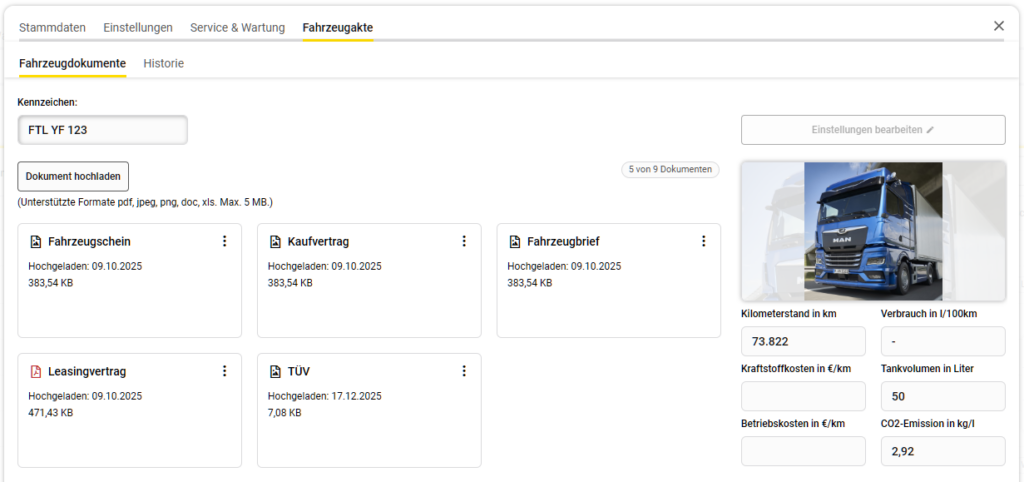 Haben Sie Dokumente die Sie öfter brauchen? Zentrale Fahrzeugdokumente wie beispielsweise ein Fahrzeugschein, der Kauf- oder Leasingvertrag können Sie separat unter Fahrzeugdokumente ablegen. So haben Sie jederzeit die wichtigsten Dokumente parat.